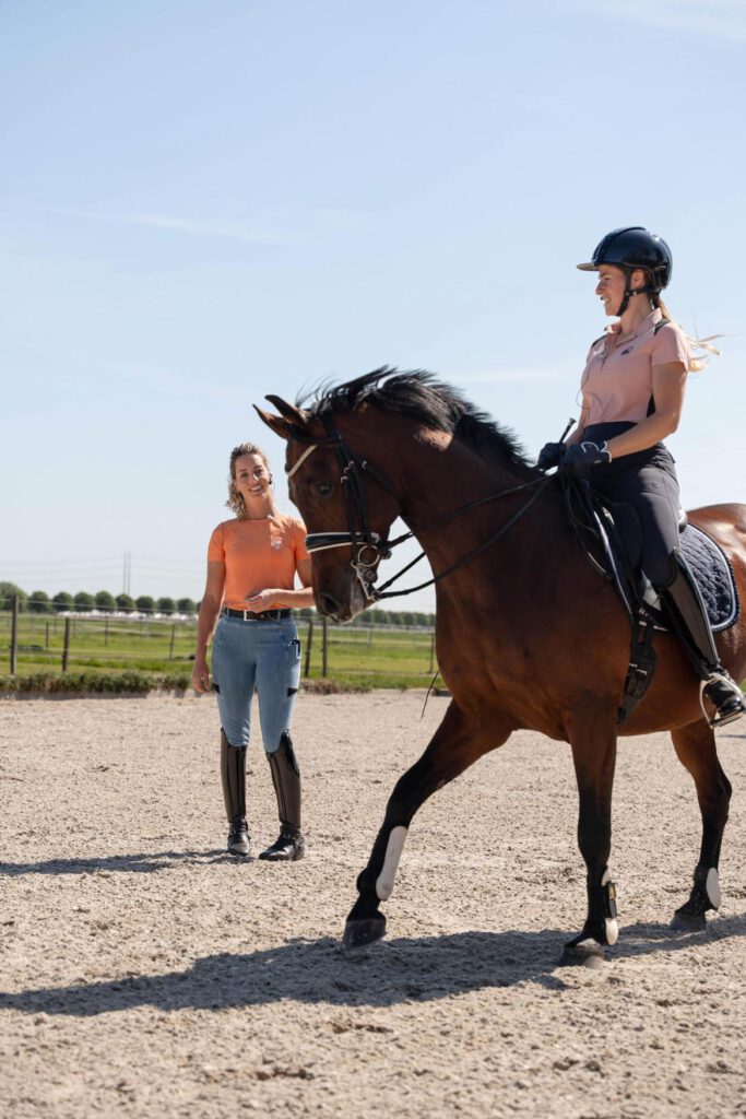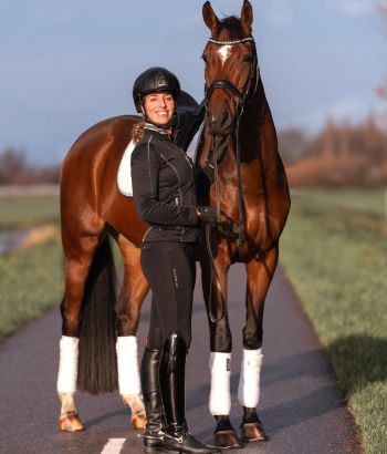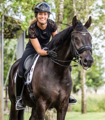 Na de aankoop van mijn eerste driejarige paard wilde ik graag wat hulp. Een stalgenoot trainde al bij Kim en was daar erg tevreden over. Na een proefles ben ik bij haar in training gegaan, en inmiddels helpt Kim mij al ruim een jaar. Ik merk nog wekelijks verbetering! Ze heeft oog voor zowel paard als ruiter en ziet precies waar de combinatie zich kan ontwikkelen. Samen lossen we knelpunten op en ze geeft altijd gericht ‘huiswerk’ mee. Kim blijft rustig, vriendelijk en is respectvol naar de paarden toe. Ik ben heel blij met haar lessen en blijf continu leren.